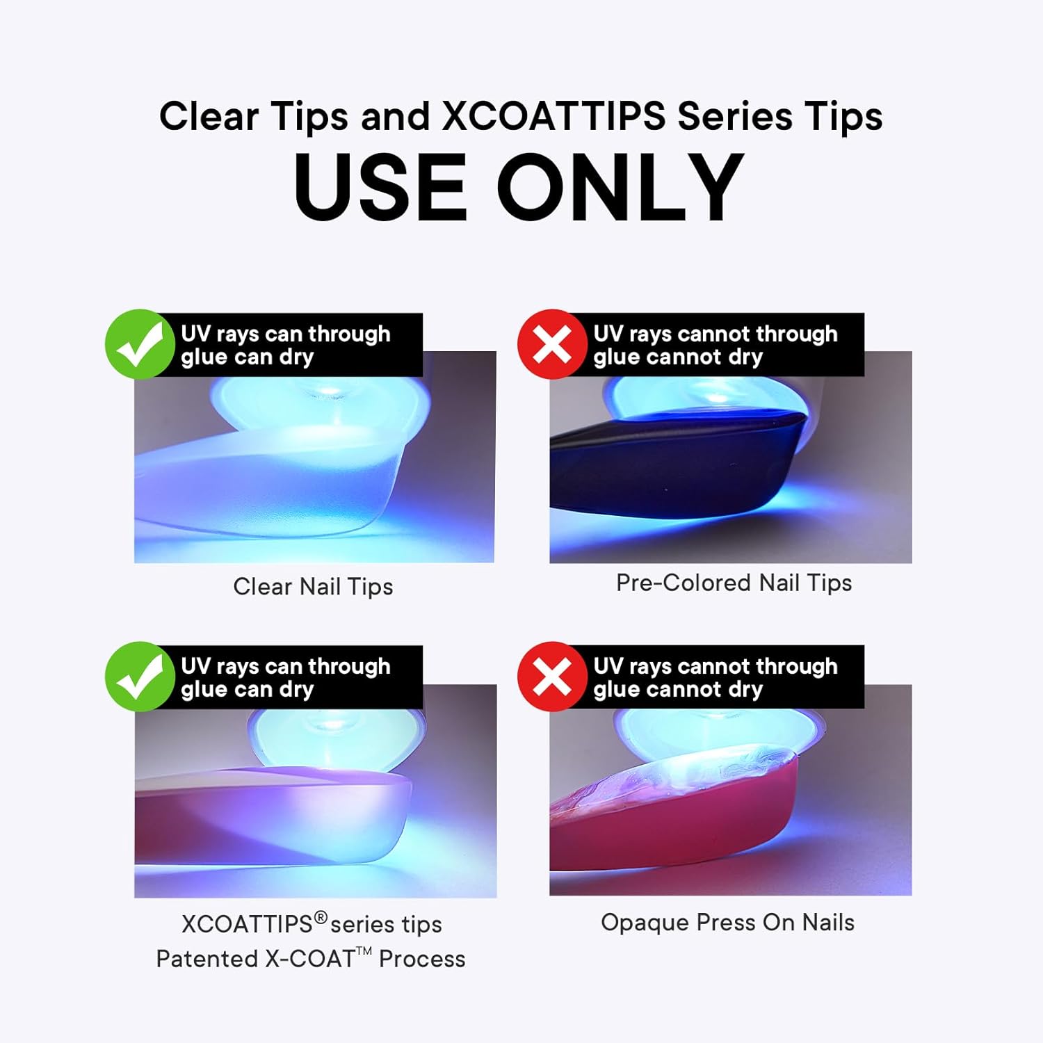 Cure Needed: After applying Gel nail glue on nail tips and sticking it to your nails, it will need 45 seconds curing under nail lamp to dry out and stick frimly.If there is any question, please feel free to contact us, we will do our best